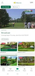 Select “Live Channels” to follow specific player pairings throughout their rounds, with dedicated commentary and stats.